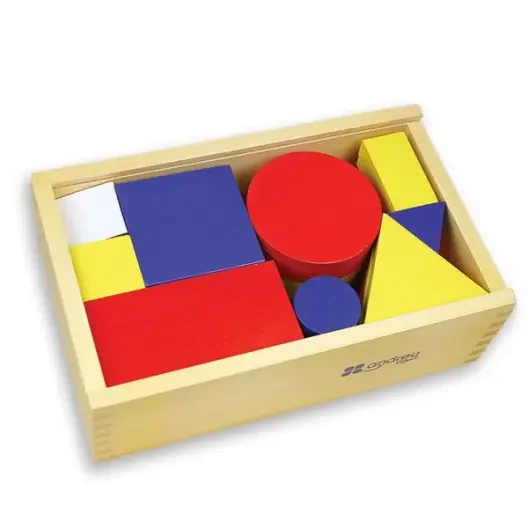Espacio + Forma + Geometría Bloques lógicos según de Diennes de diferentes formas de madera